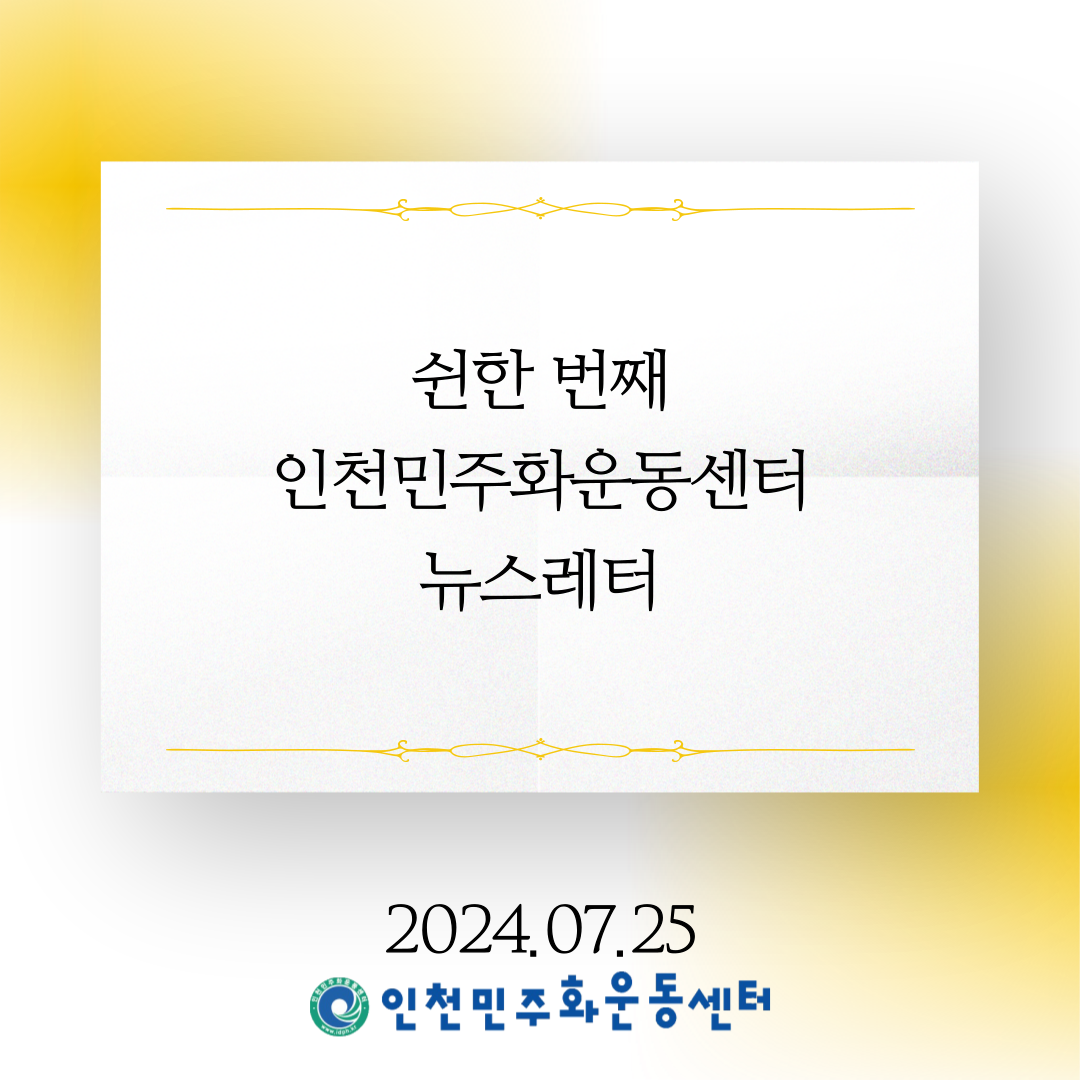 인천민주화운동센터 소식에 항상 귀 기울여주시는 분께 더 직관적으로 활동에 대해 알릴 수 있도록, 인천민주화운동센터 뉴스레터가 아직 낯선 분께 우리의 활동을 더 알릴 수 있도록 노력하겠습니다????????????