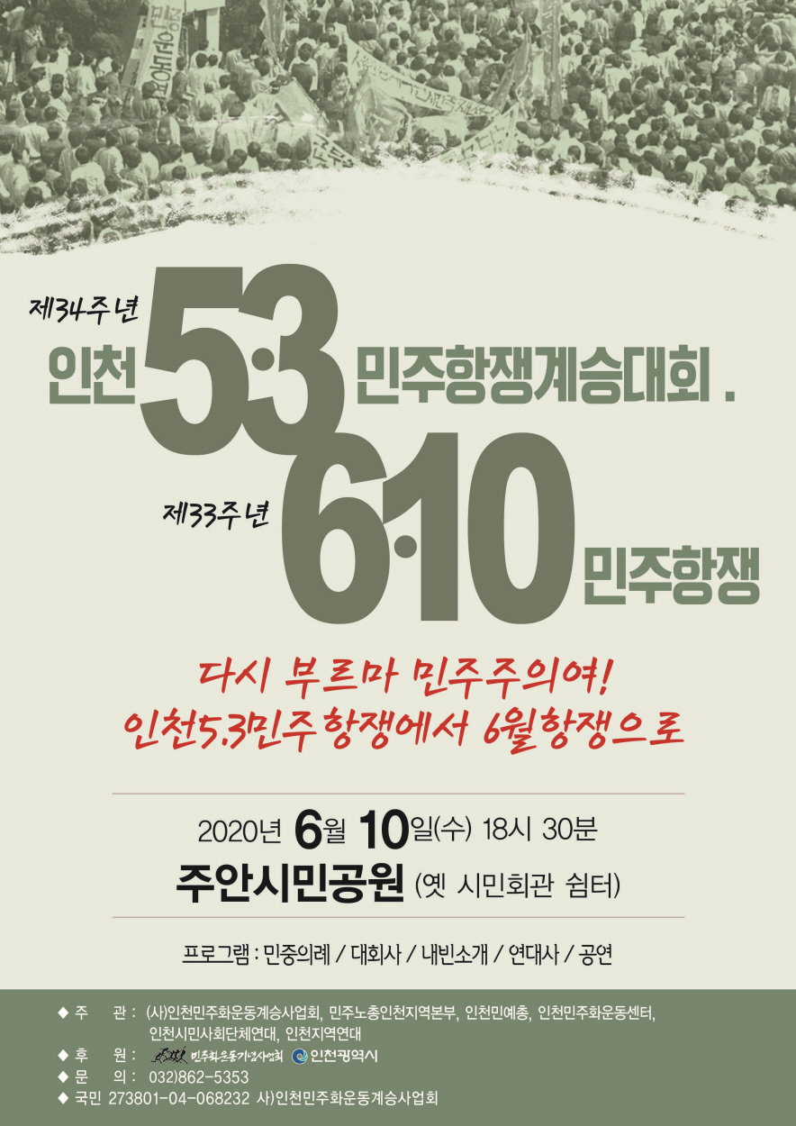 인천 5.3 민주항쟁 계승대회 연기 안내NEXT