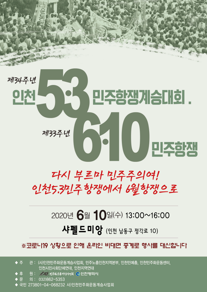 인천 5.3 민주항쟁 계승대회 & 6.10 민주항쟁 온라인 비대면 중계