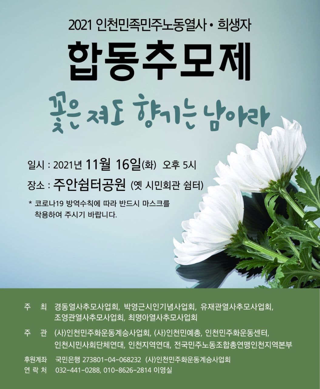 4) 후원계좌 : 국민은행 273801-04-068232 (사)인천민주화운동계승사업회