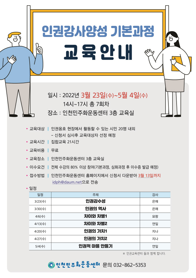 인권강사양성 기본과정 교육안내