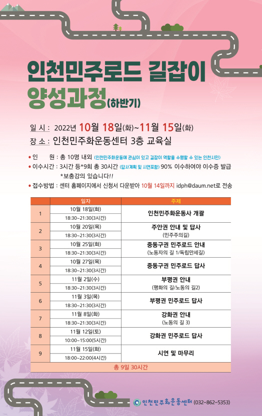인천민주로드 길잡이 양성과정-길잡이 모집(하반기)