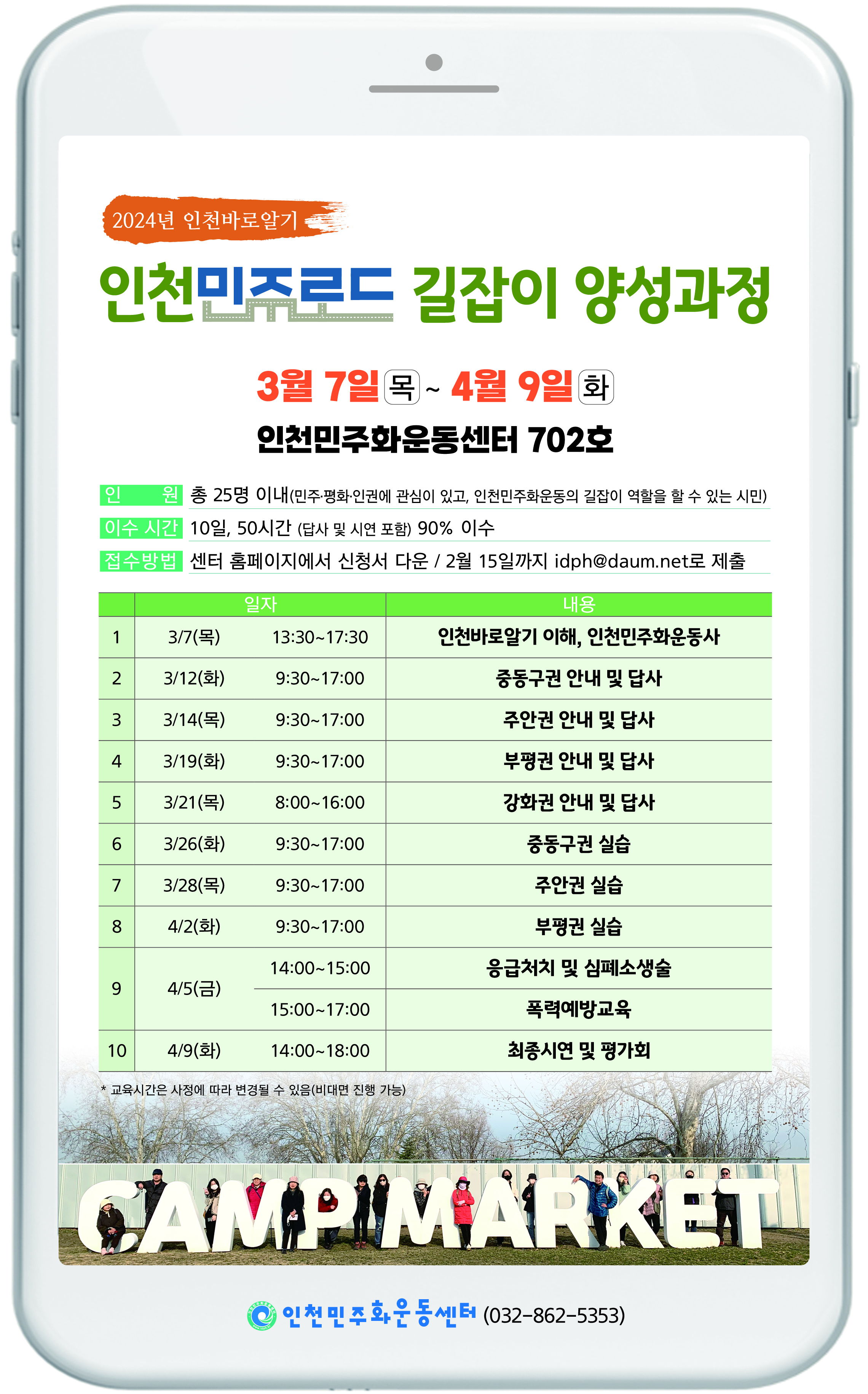 2024년 인천바로알기 인천민주로드 길잡이 신규양성교육과정 대상자 모집 공고