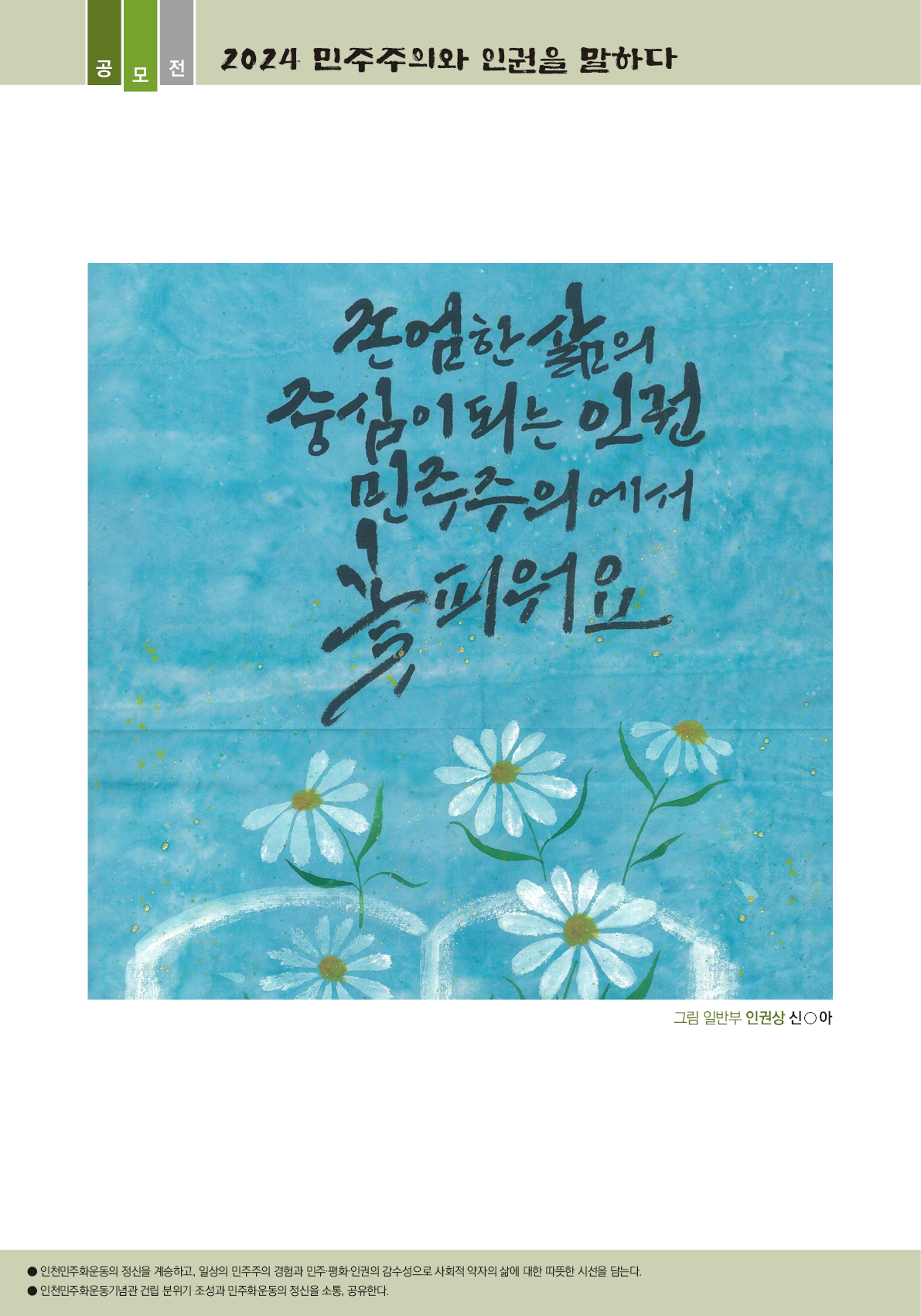 내용: 인천민주화운동기념관 건립민주주의와 인권을 말하다 공모전 당선작 등 총 30