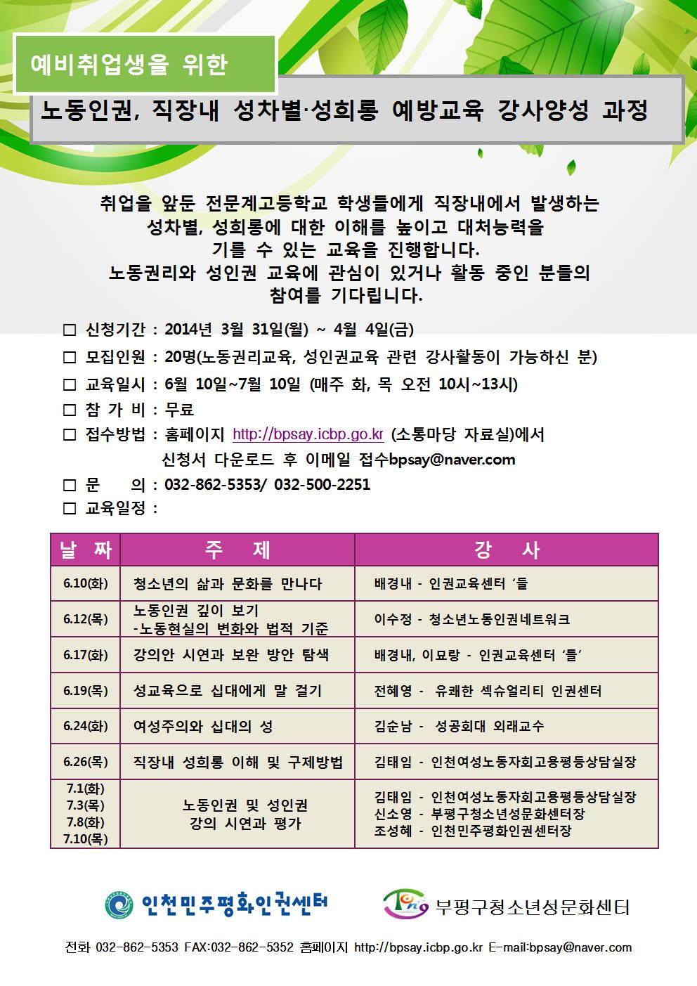 2014 예비취업생을 위한 노동.성인권 예방교육 강사양성과정