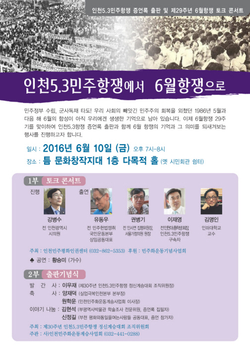 인천5.3민주항쟁 증언록 출판 및 제29주년 6월항쟁 토크 콘서트