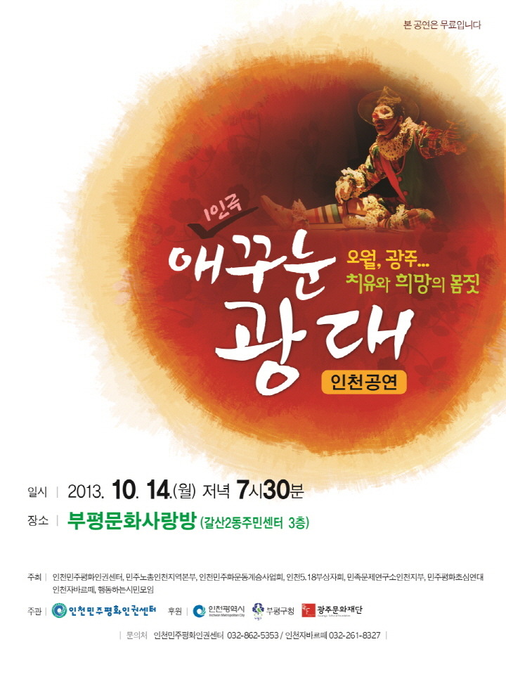 [10/14(월) 19시 30분] 1인극 애꾸눈광대 인천공연
