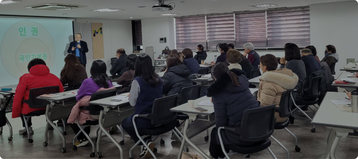 서로 마주한 두 사람의 형상은 모든 시민이 존중받고 주권의 주체로서 참여하는 민주주의를 나타내며, 중심의 촛불은 민주화운동의 뜨거운 정신과 시대를 밝히는 희망을 의미합니다. 이를 받치고 있는 열린 책은 인천 민주화운동의 역사를 발굴하고 기록 · 연구 · 보존하여 다음 세대에 계승하려는 비전을 상징합니다. 시민과 역사가 함께 만들어가는 참여 · 기록 · 계승의 민주주의 가치를 시각적으로 담았습니다.