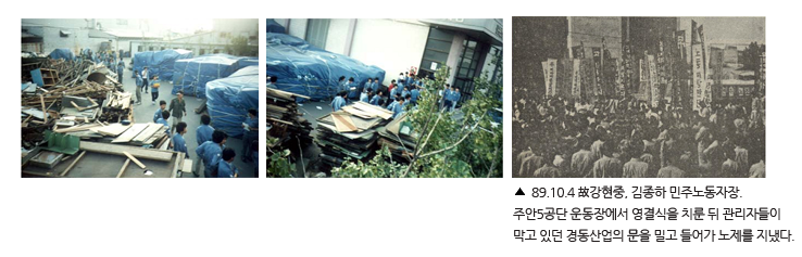 경동산업 노동자 투쟁과 9.4 집단분신 사건 인천 가좌동에 위치하고 있던 경동산업은 주방용품과 양식기 제조업체로 서울 영등포본사(A공장)과 인천에 B, C, D공장이 있었다. 1960년 종업원 100명으로 시작해 87년 당시 인천에만 2,500여 명의 노동자가 근무하는 회사였다. 대부분 프레스와 연마공정으로 크고 작은 산재사고가 잇따라 발생했고, 저임금과 장시간 노동으로 이직율이 대단히 높았다.