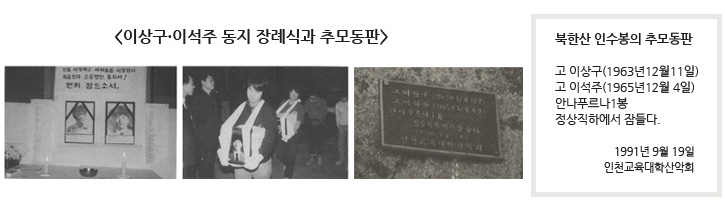 1991.9.19 운명, 당시 26세, 북한산 인수봉에 추모동판 설치